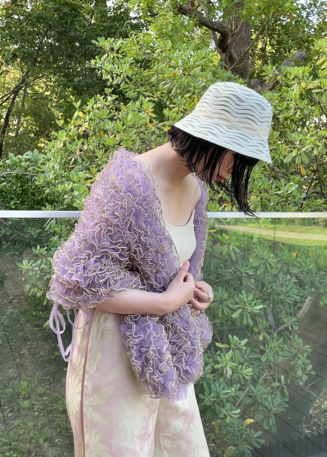 透けとボリュームのギャップがモードな "ボレロ&ショール" です。