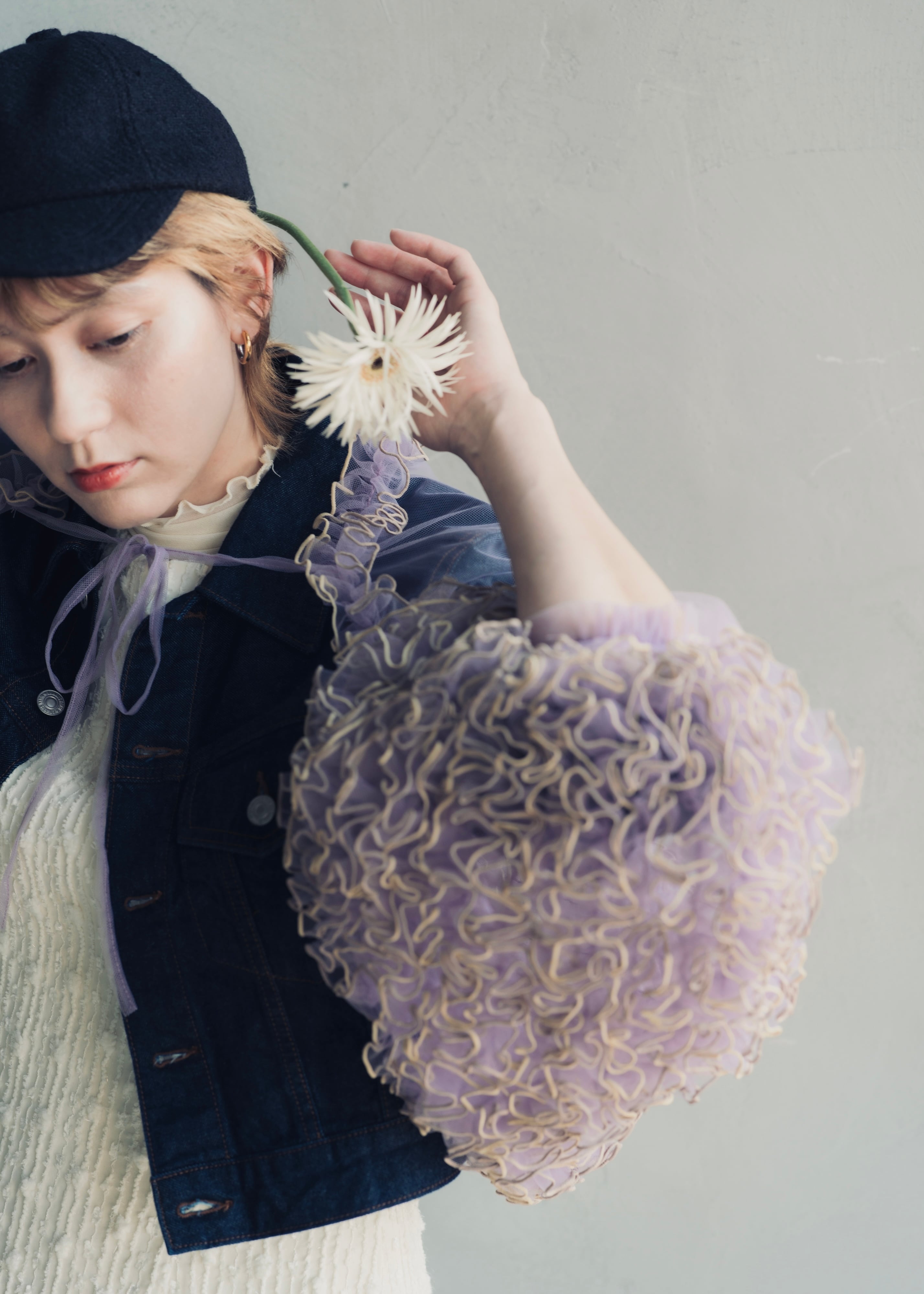 ① メローチュールのボリュームが肩周りを覆うスタイル