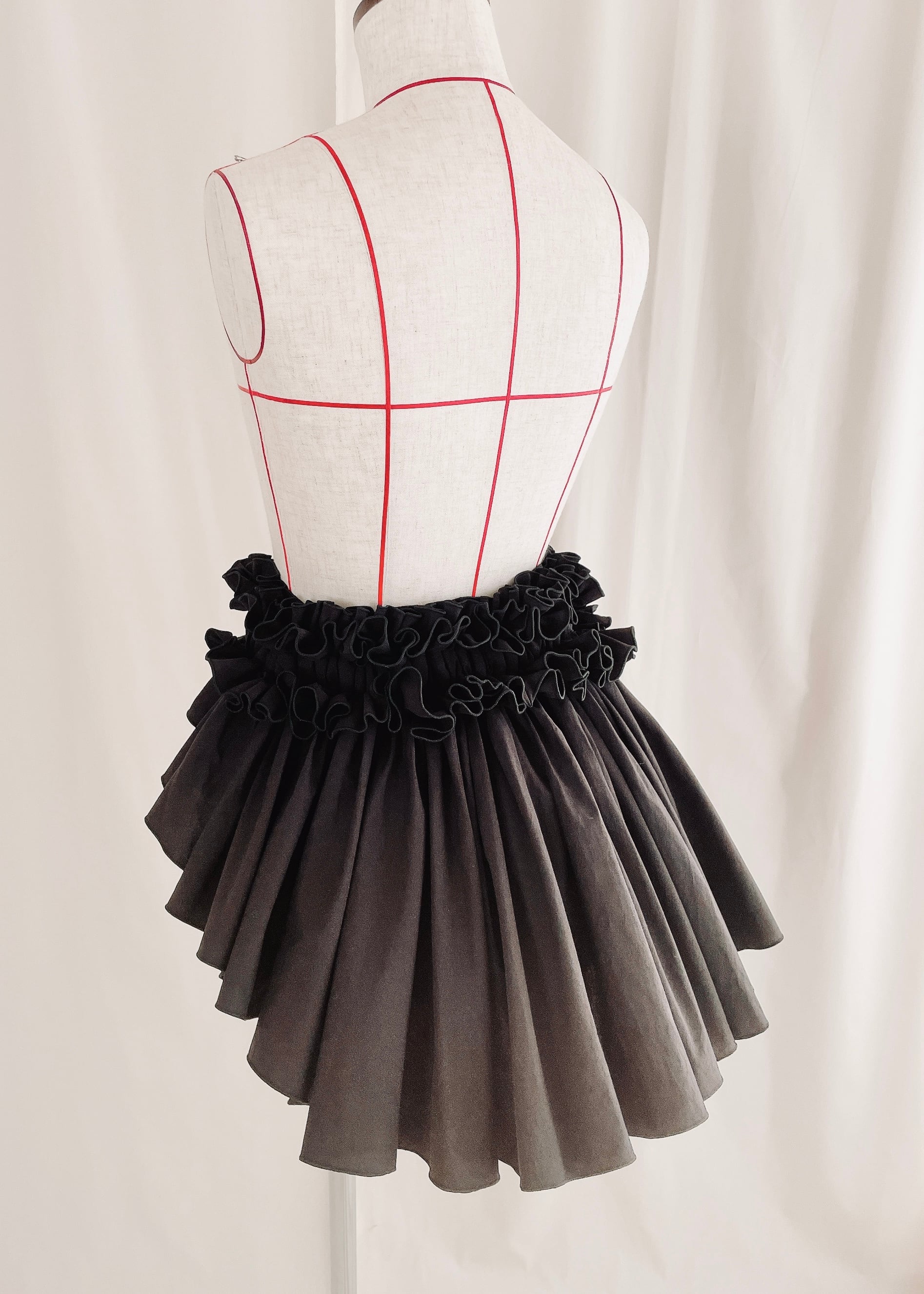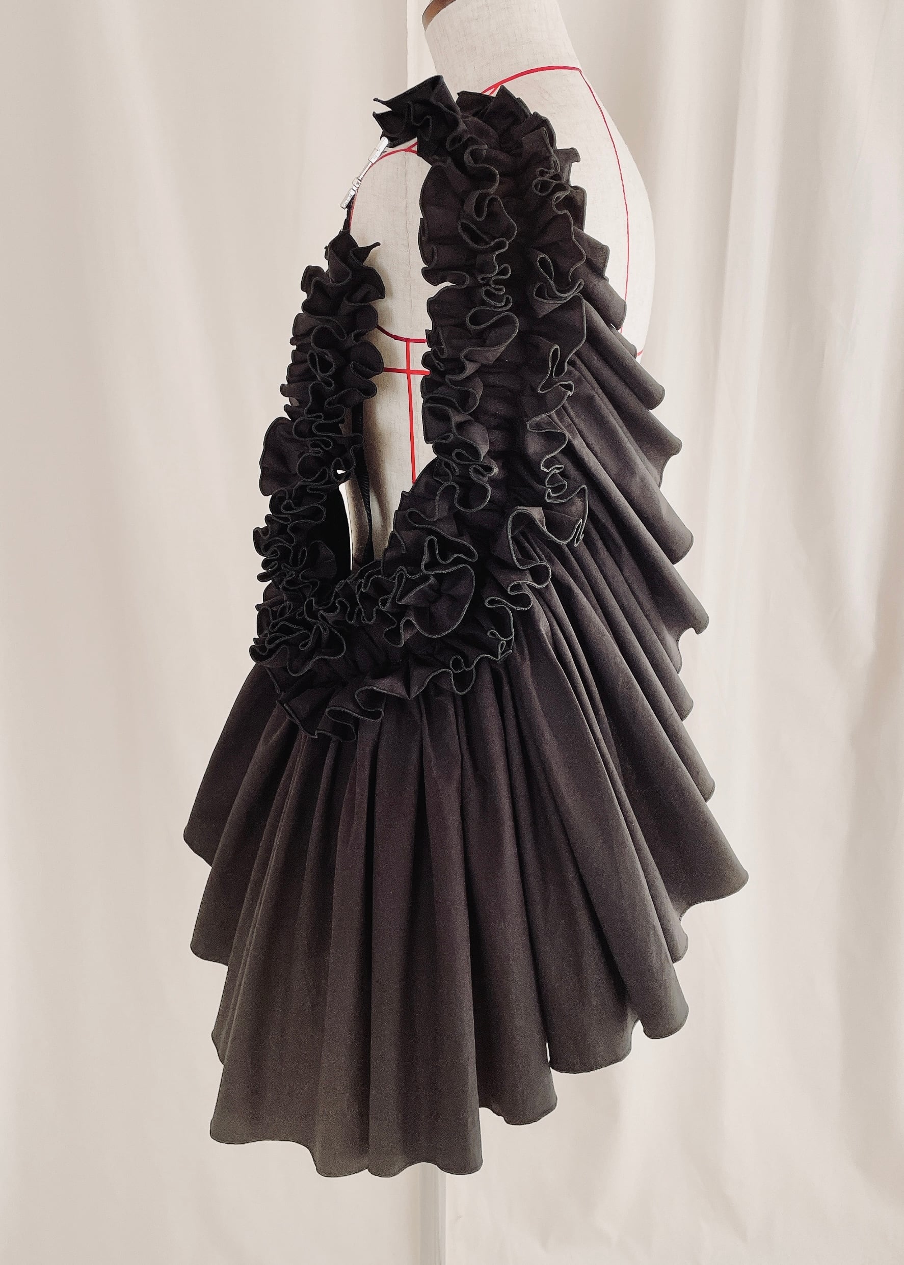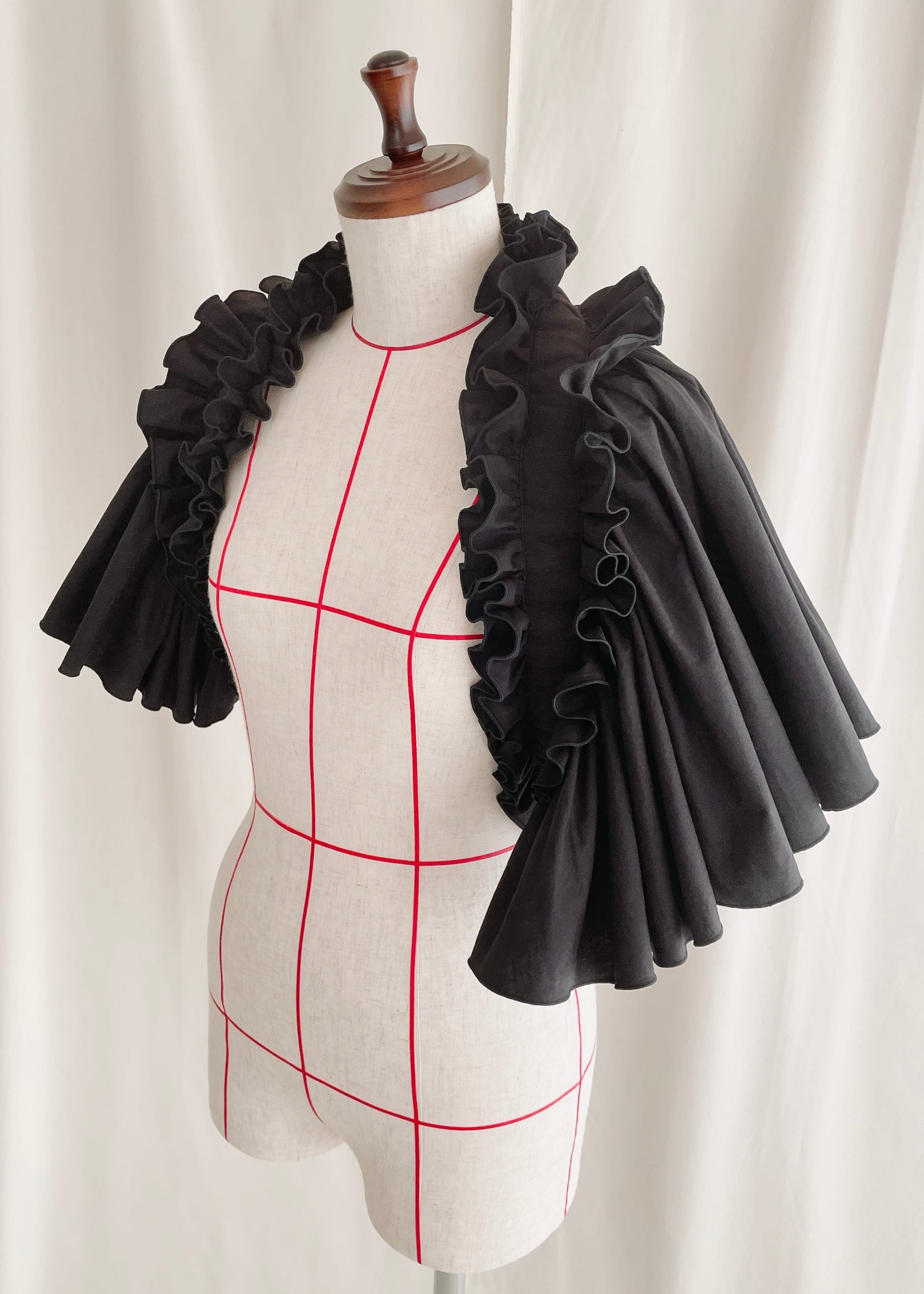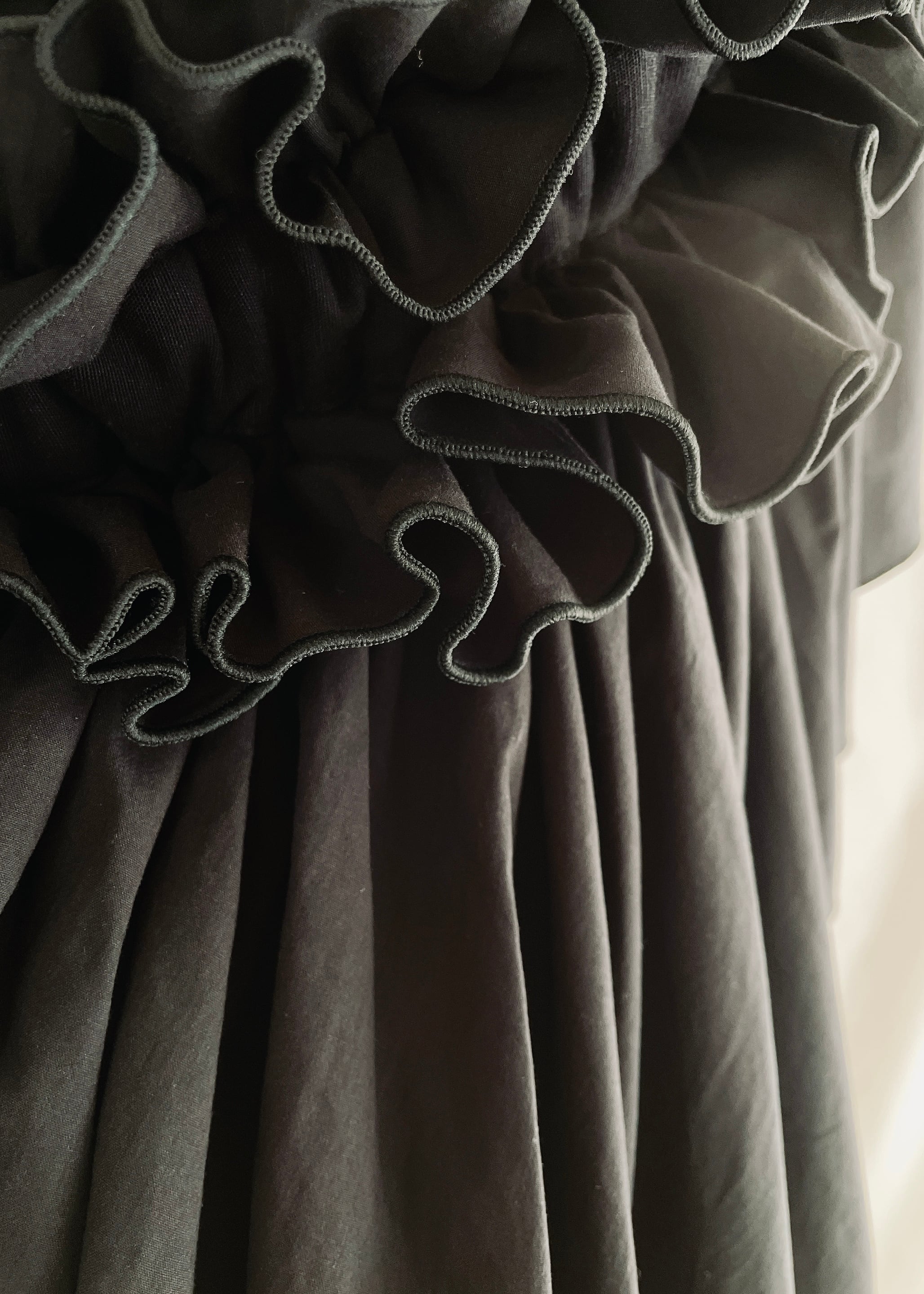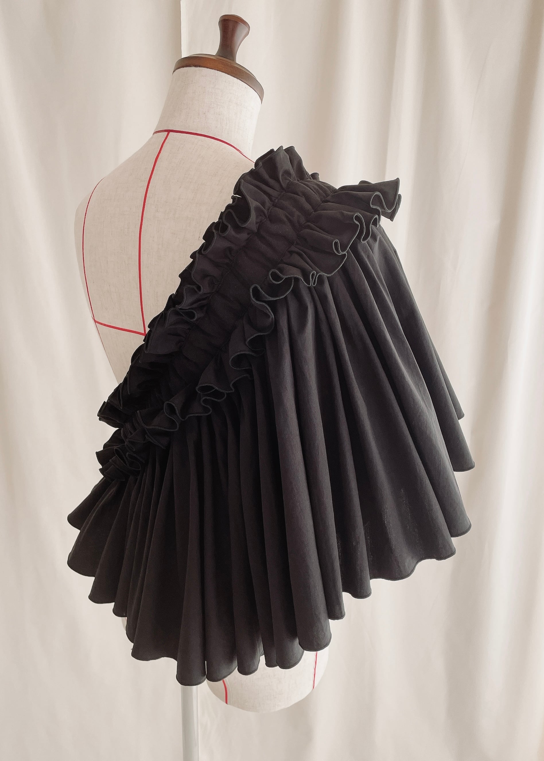 程よいハリとしなやかさを兼ね備えているため、美しいドレープが生まれ、立体的なフリルに。