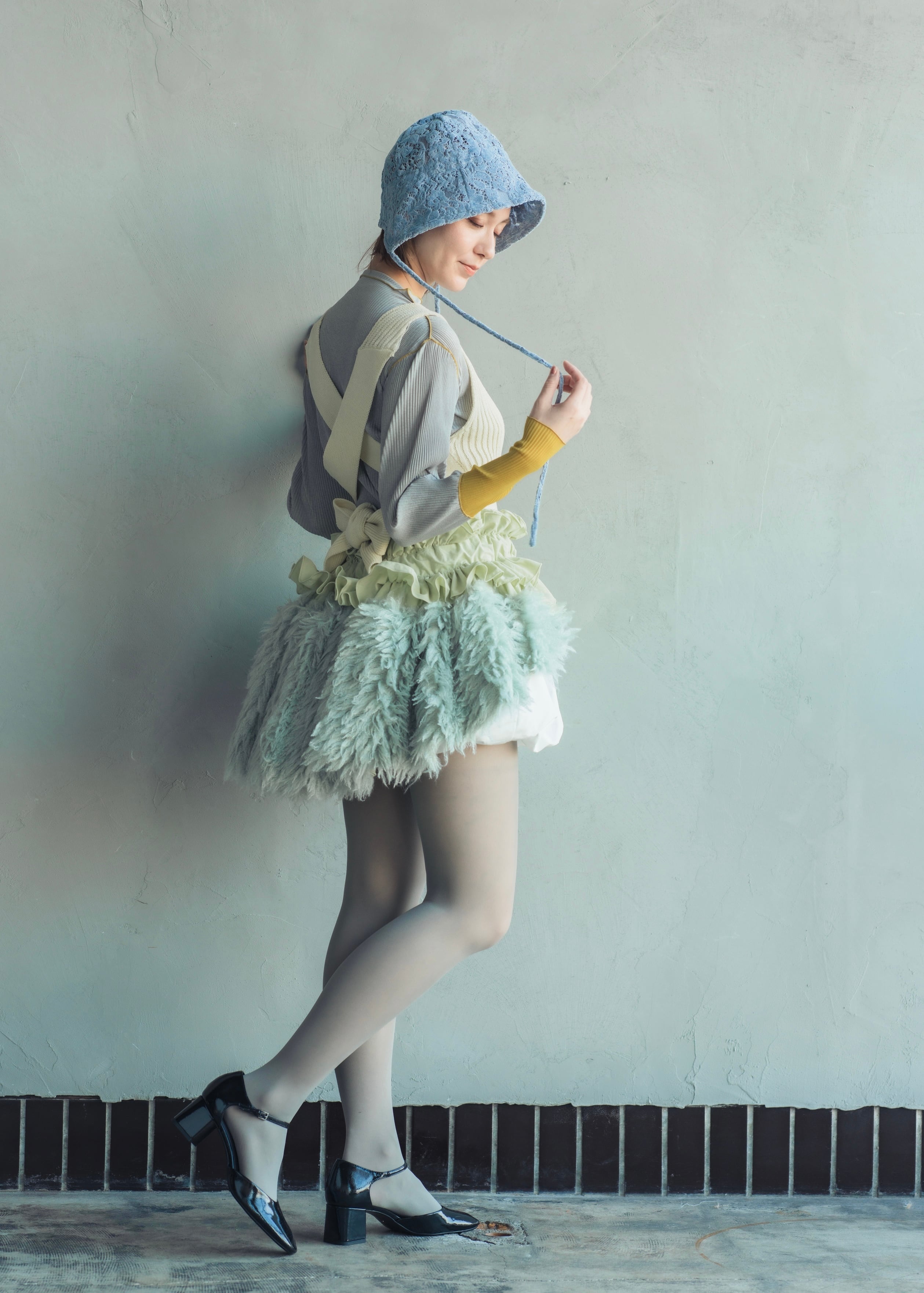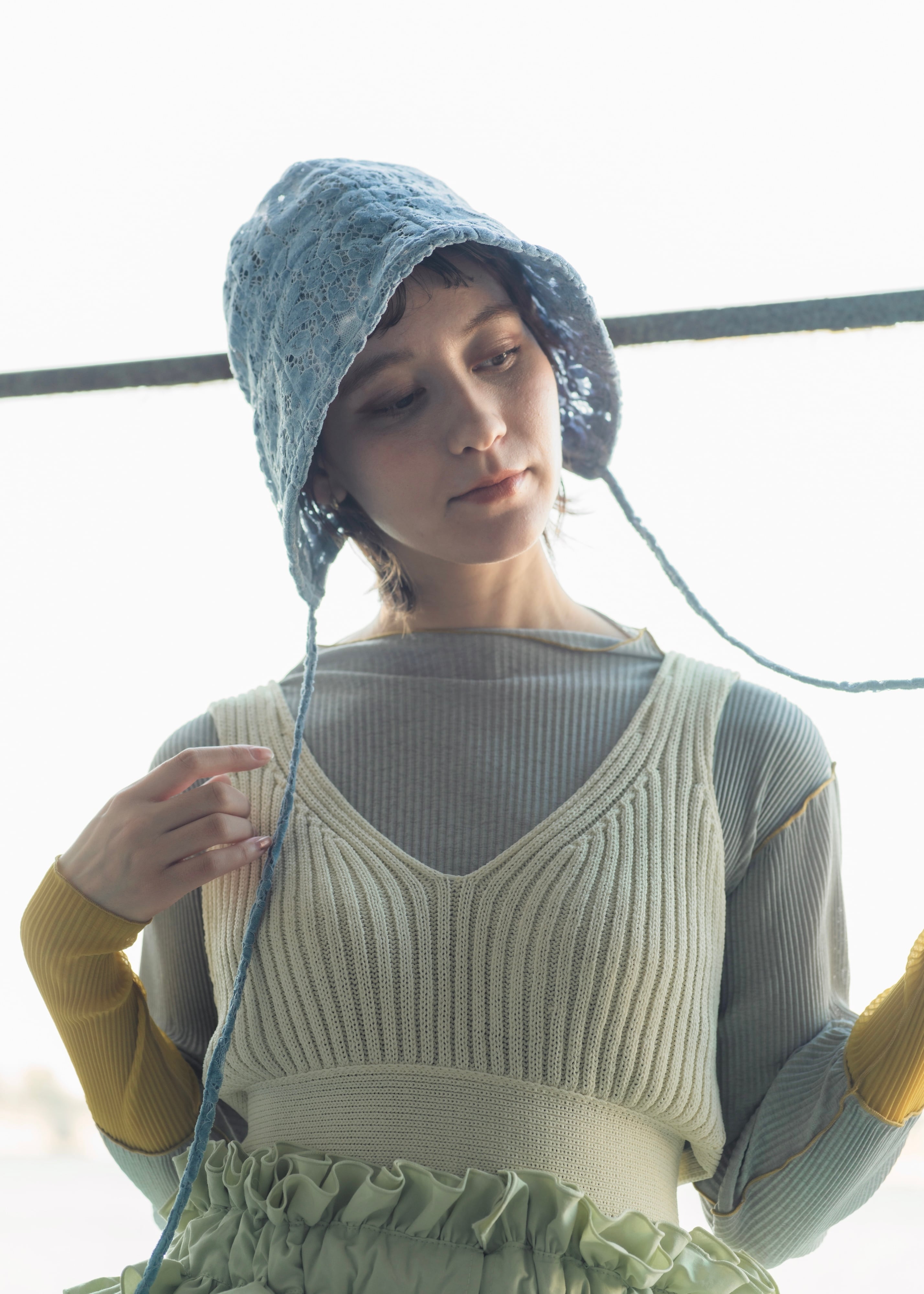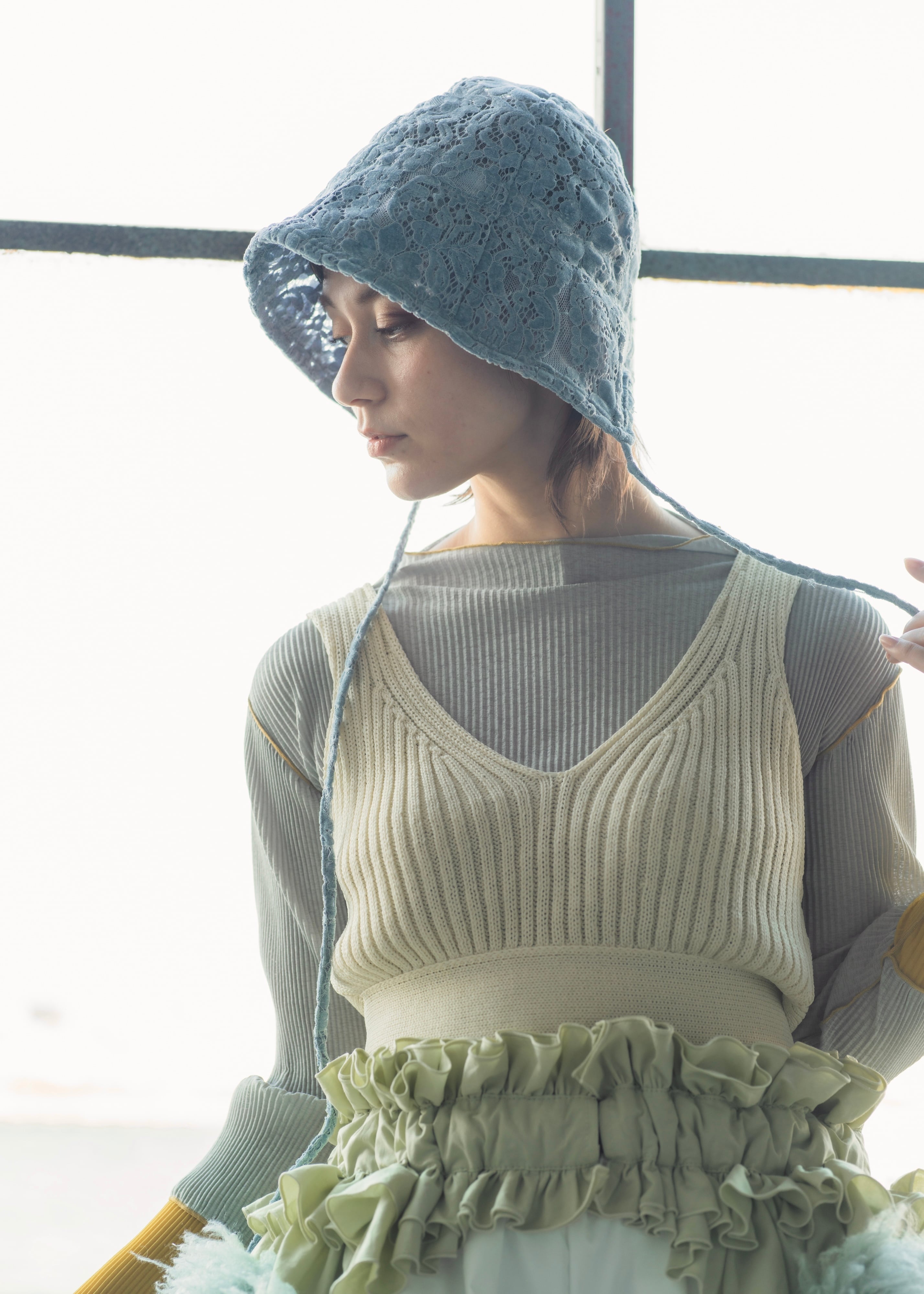 可憐でクラシカルなムードを纏った〈ベロアレース ボンネットハット〉