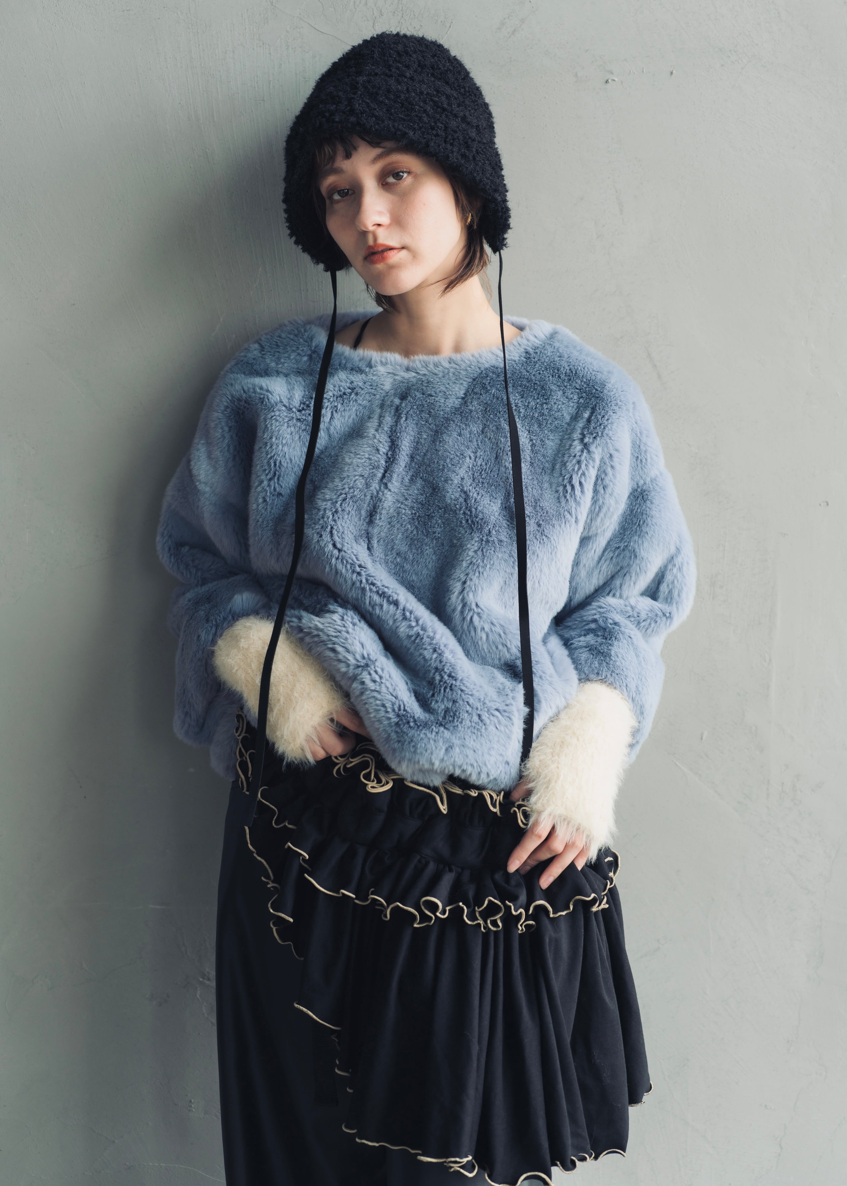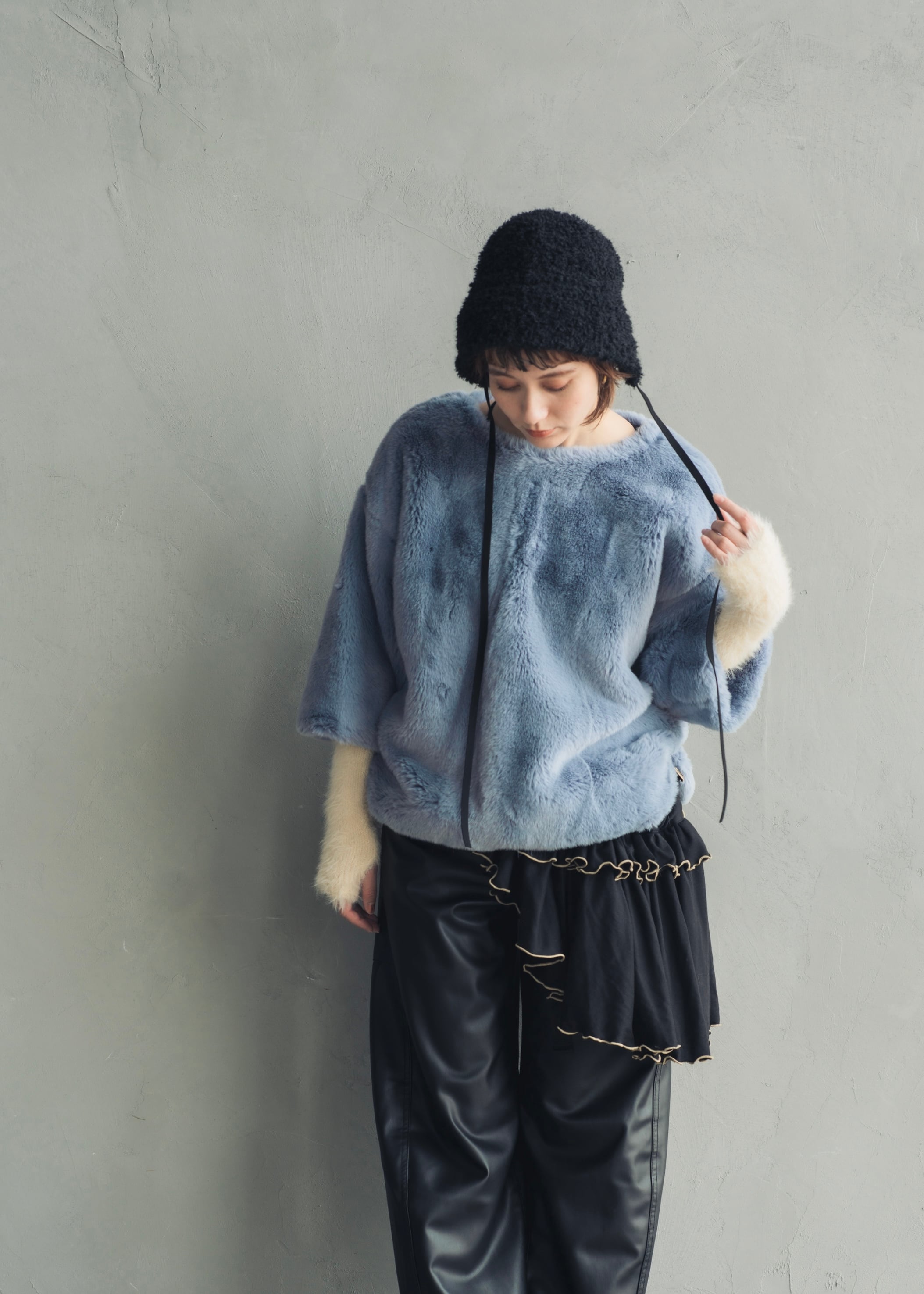 冬のムードをプラスする〈ブークレ ボンネットハット〉