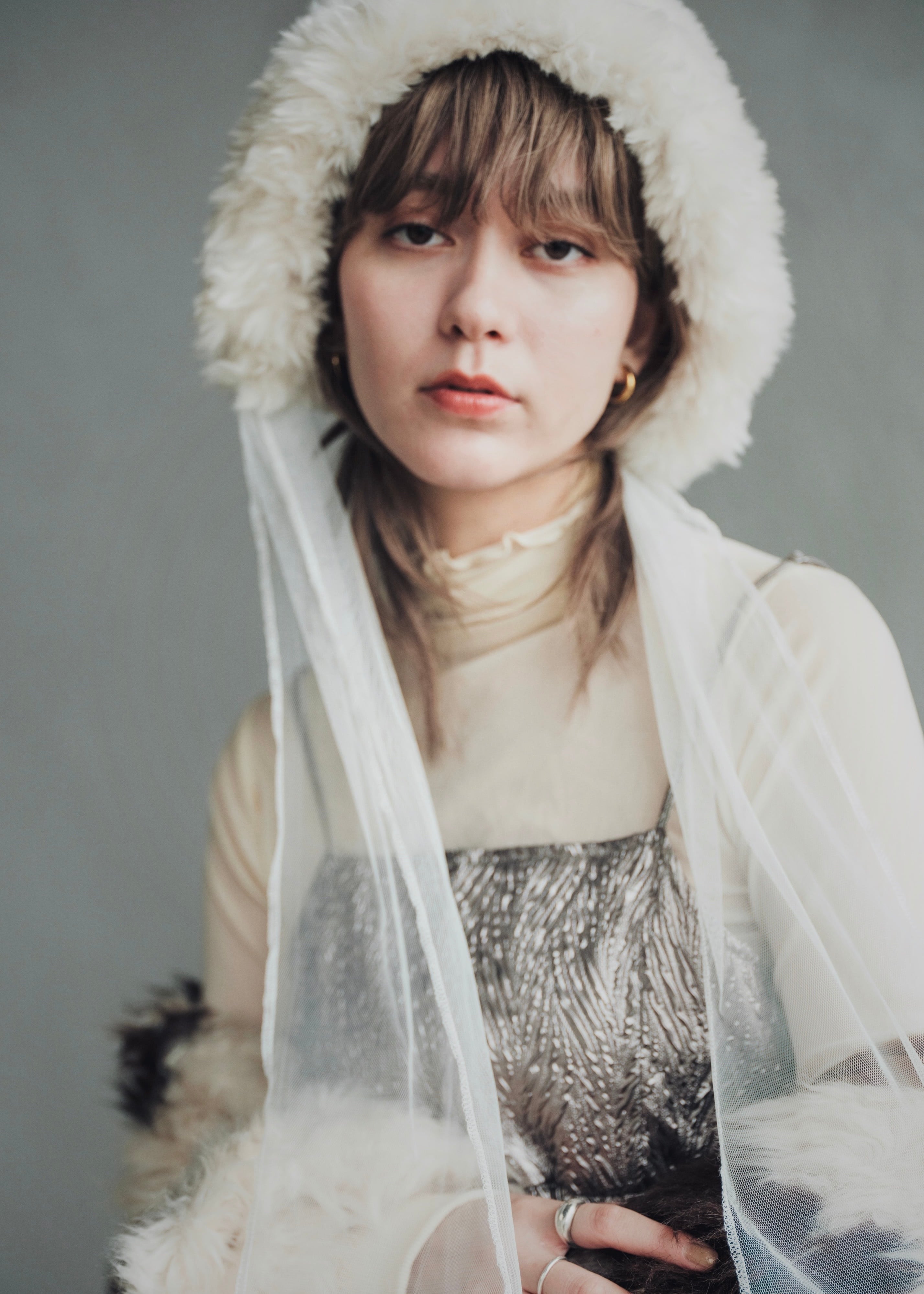 ふわふわのボリューミーファーに、チュールリボンの抜け感を掛け合わせた異素材ミックス。