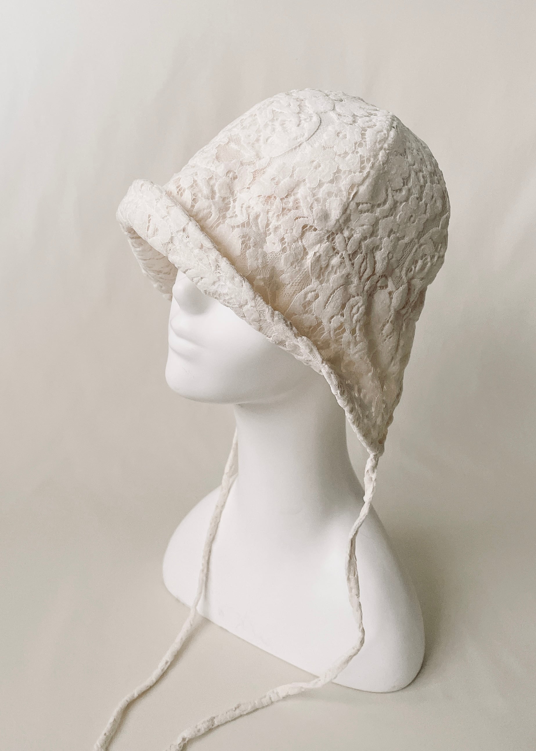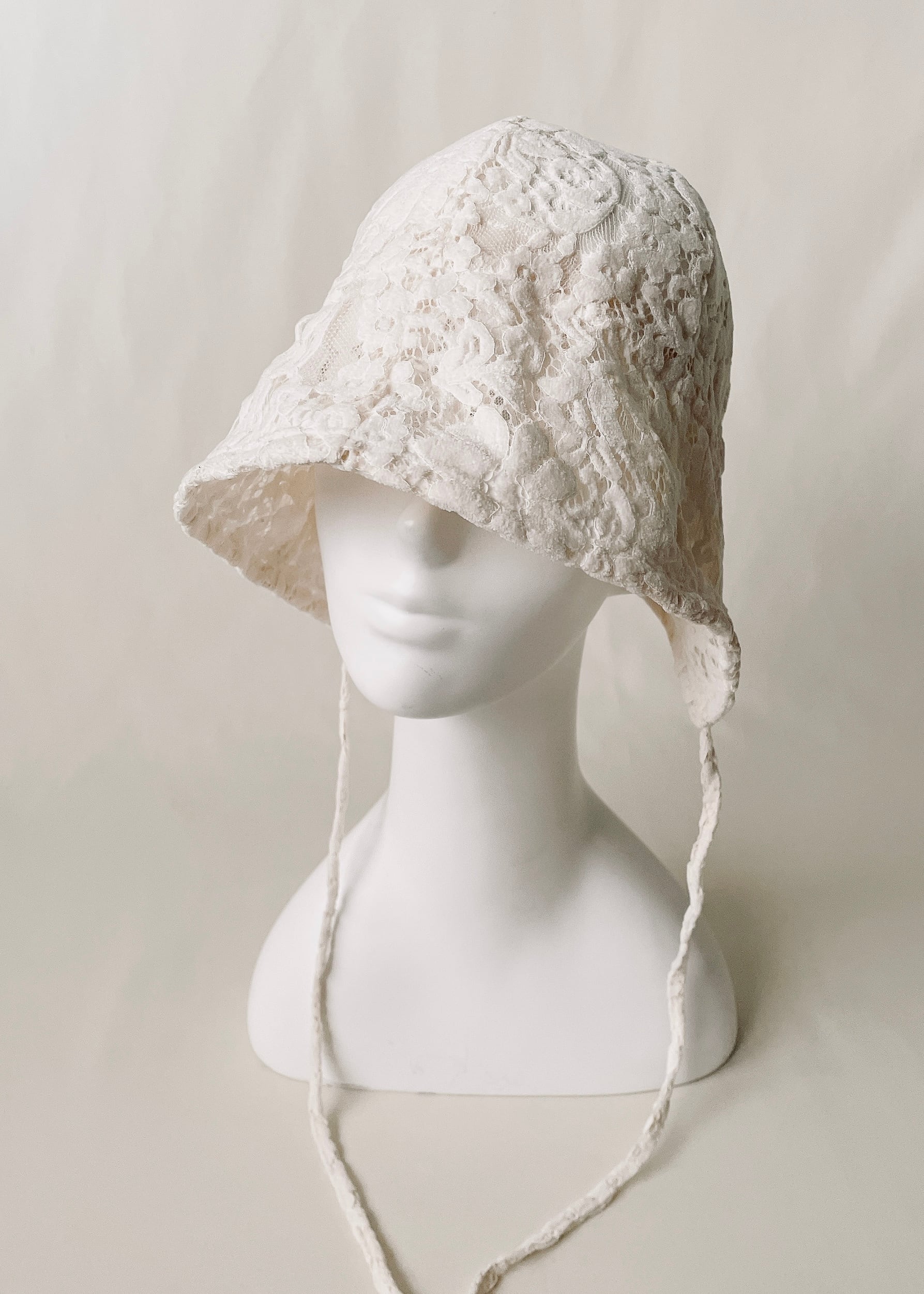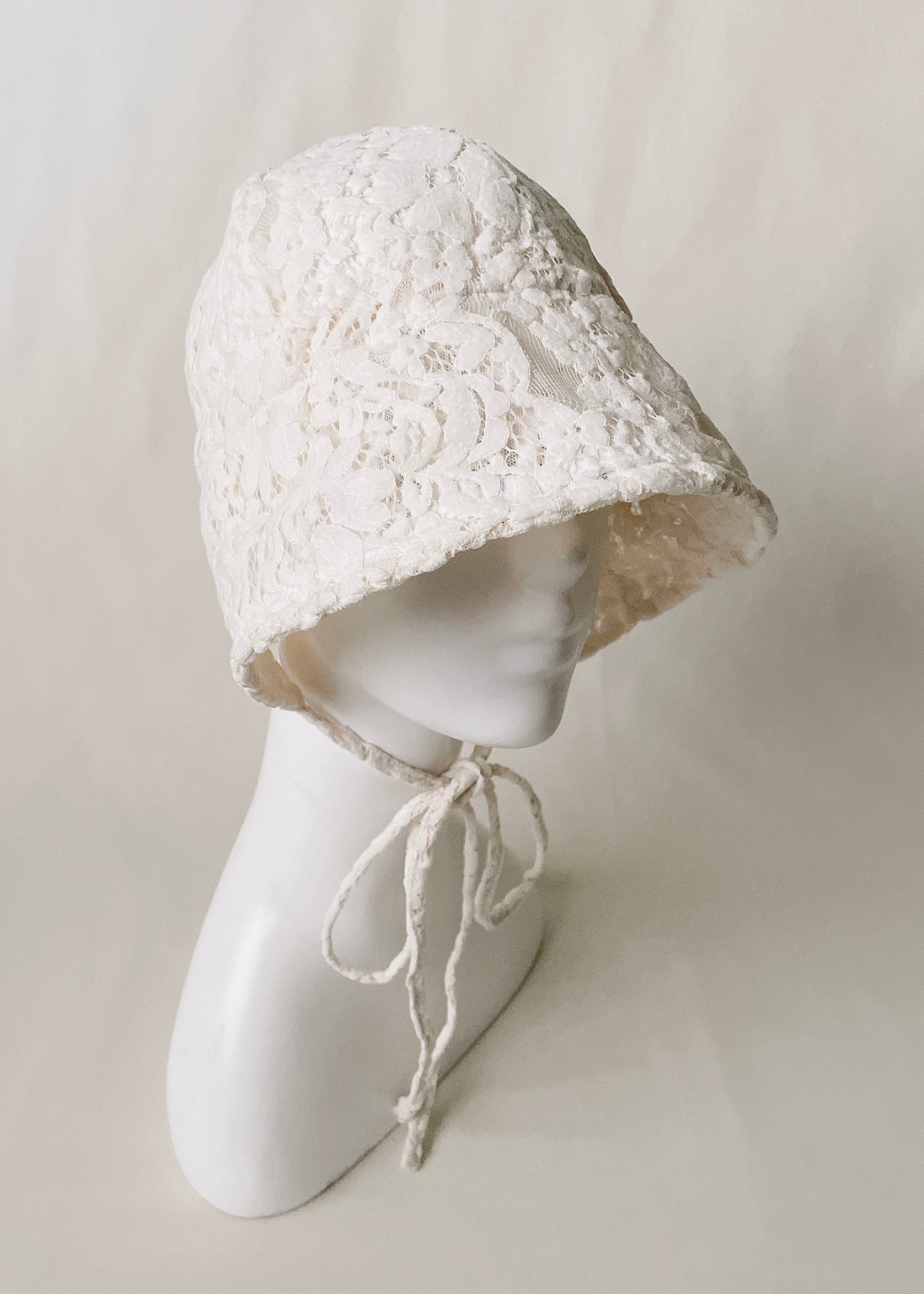クラシカルなムードを纏った〈ベロアレース ボンネットハット〉