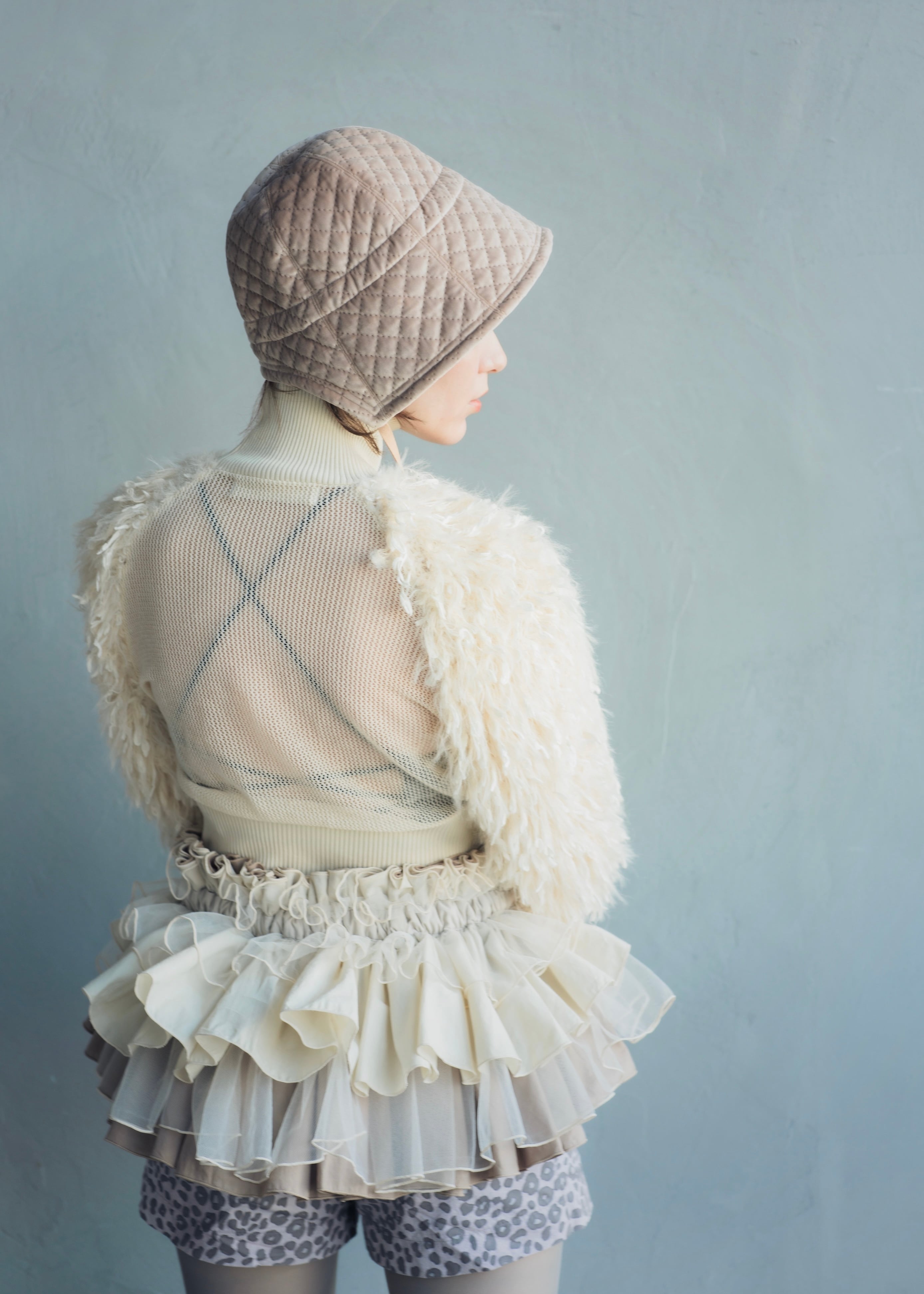 秋冬の日除けと防寒を兼ね備え、さらにバックスタイルまでしっかりかわいいのがミソ。