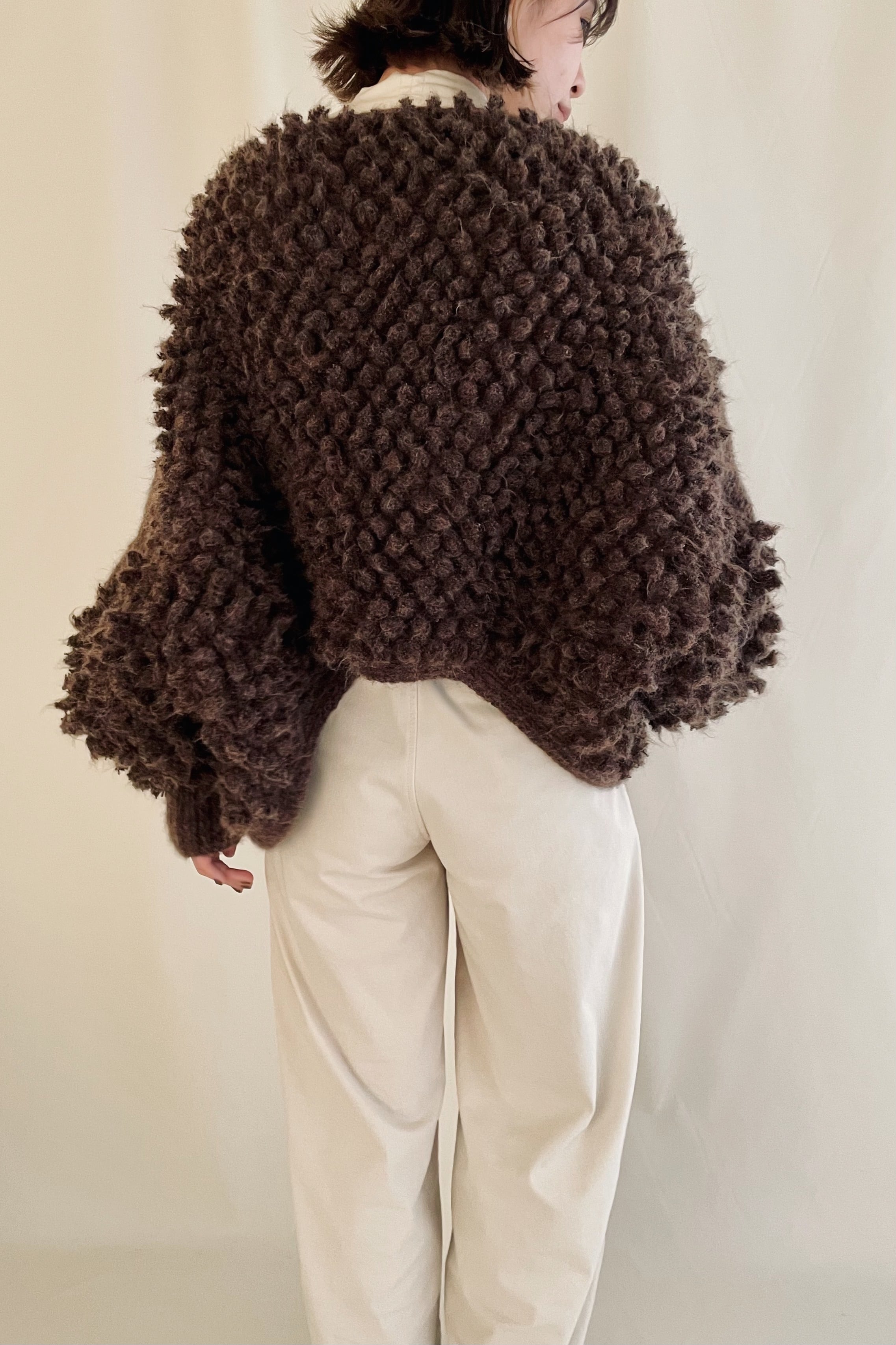 ループ編みの凹凸感が映える、ぽこぽこニットボレロ。