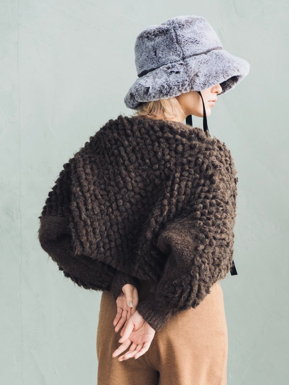 ストレートヤーンのループ編みとは違った独特で深みのあるユニークな表情が生まれます。