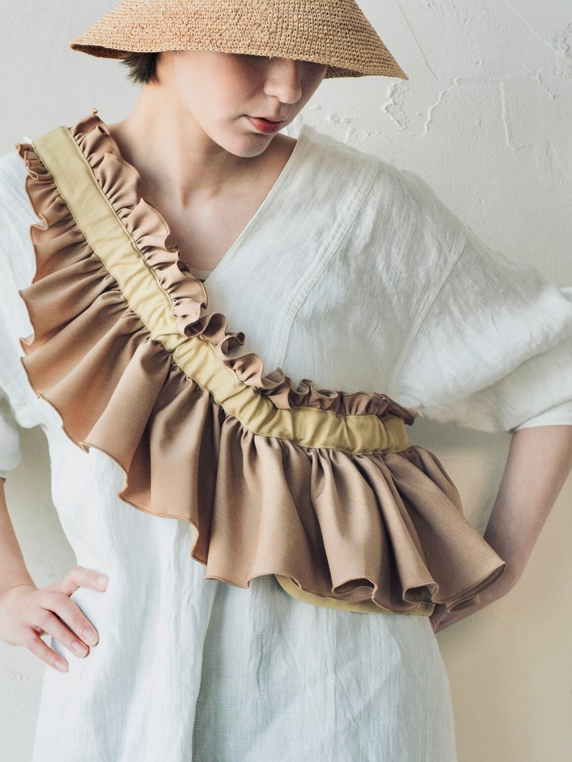 生地はさらりとして程よく張りがあるため、フリルの立体感をふわりとキープします。
