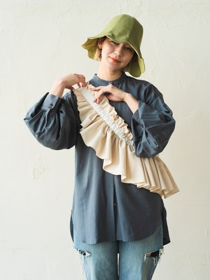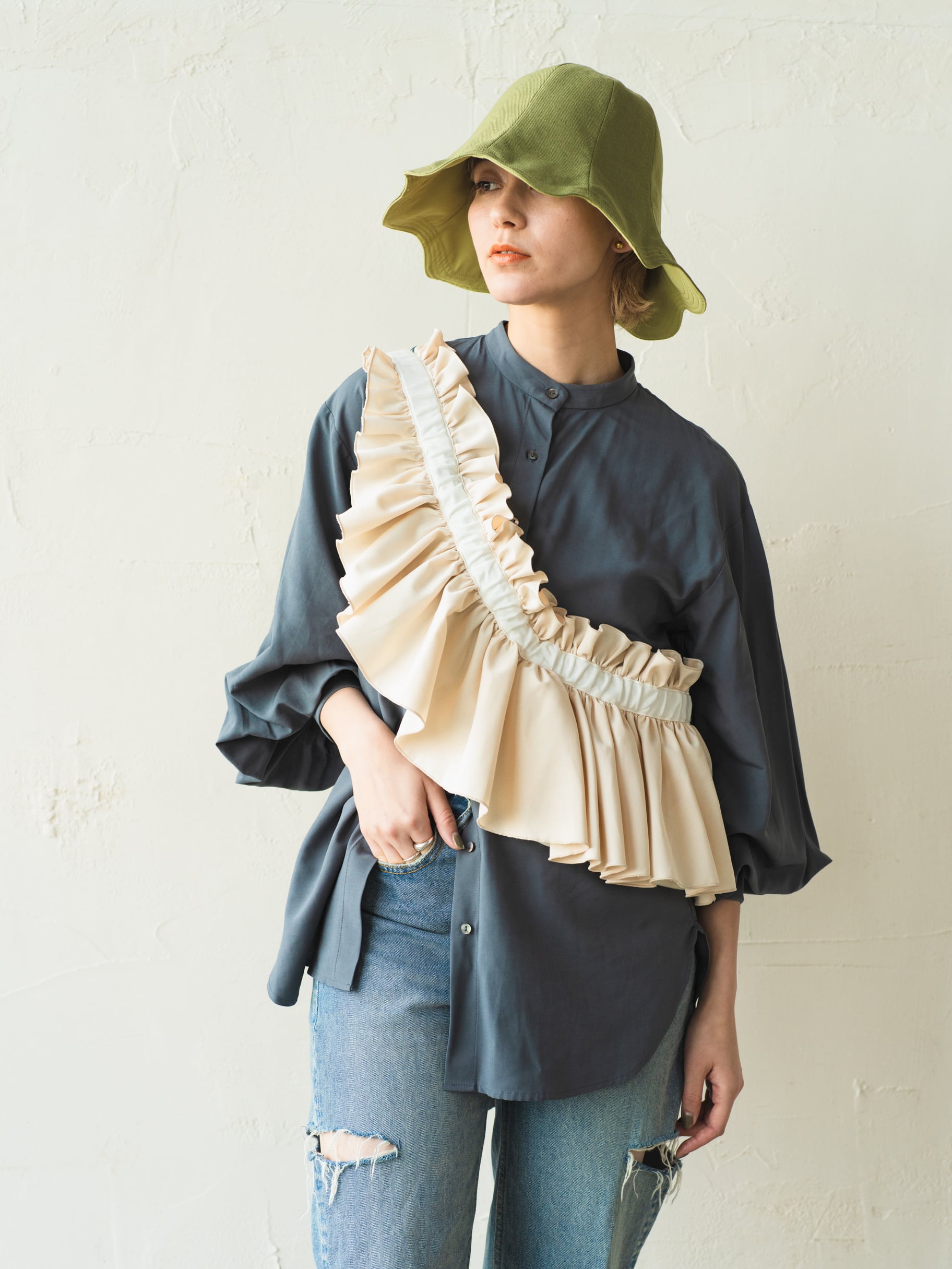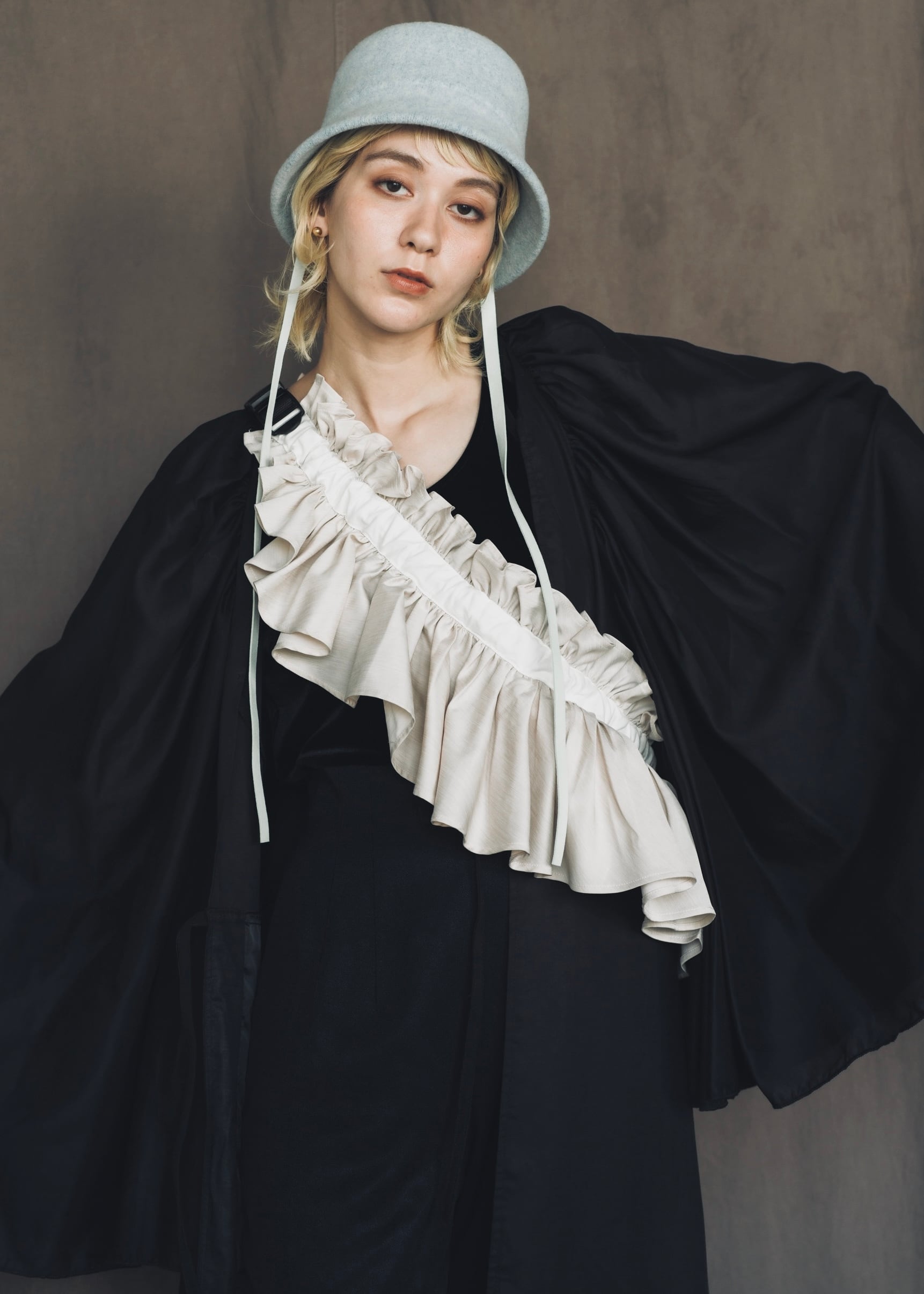 生地はさらりとして程よく張りがあるため、フリルの立体感をふわりとキープします。