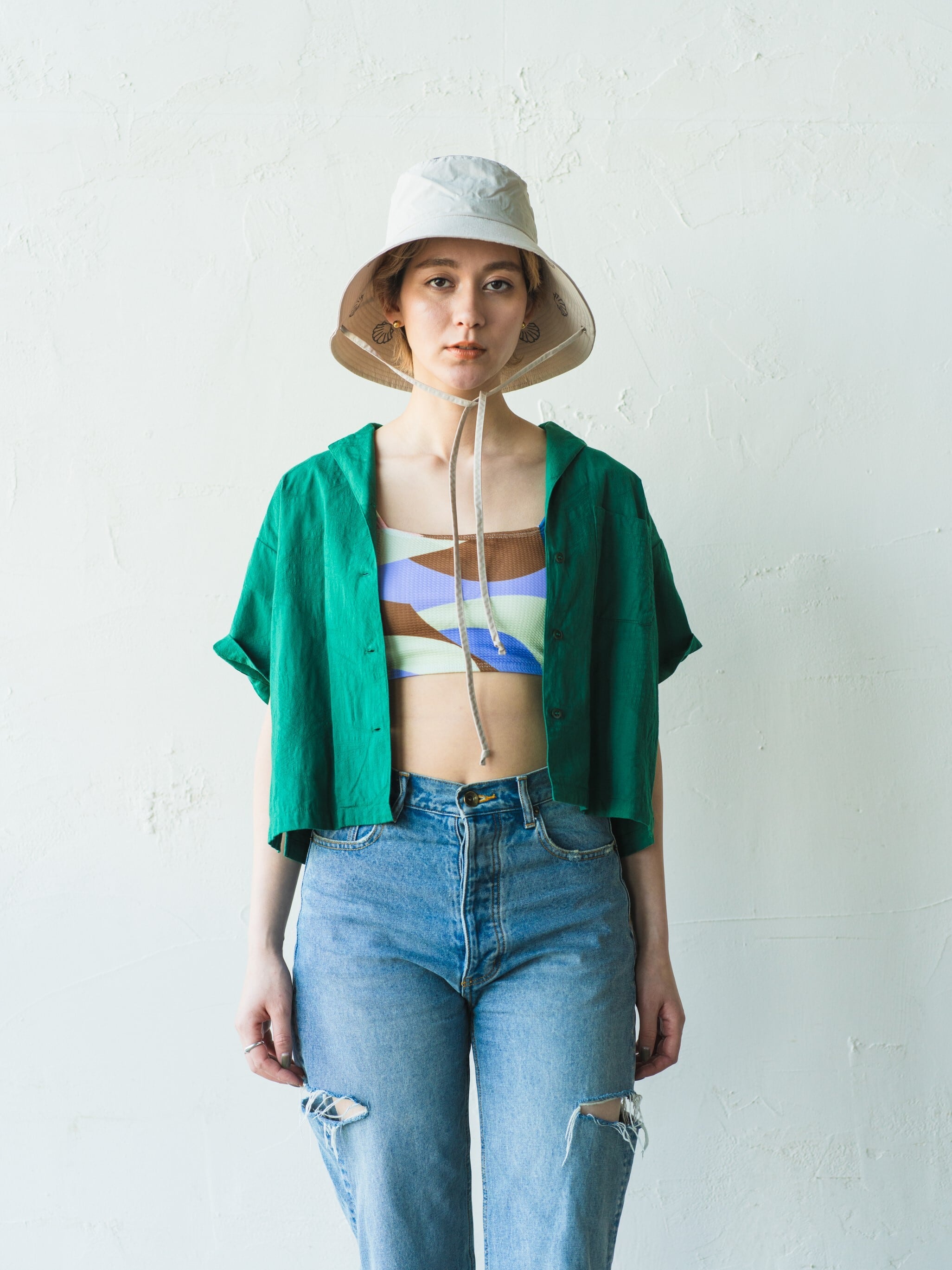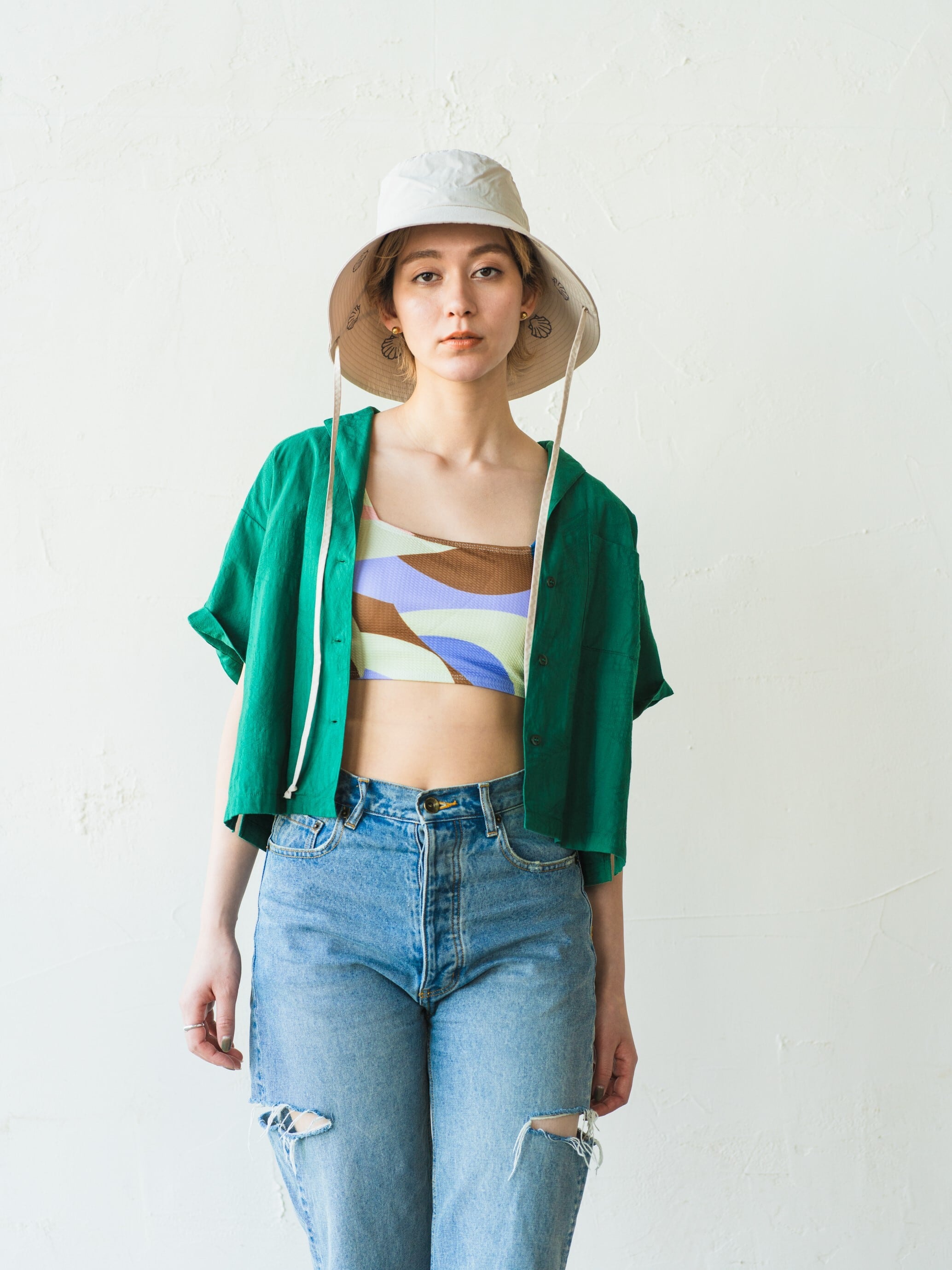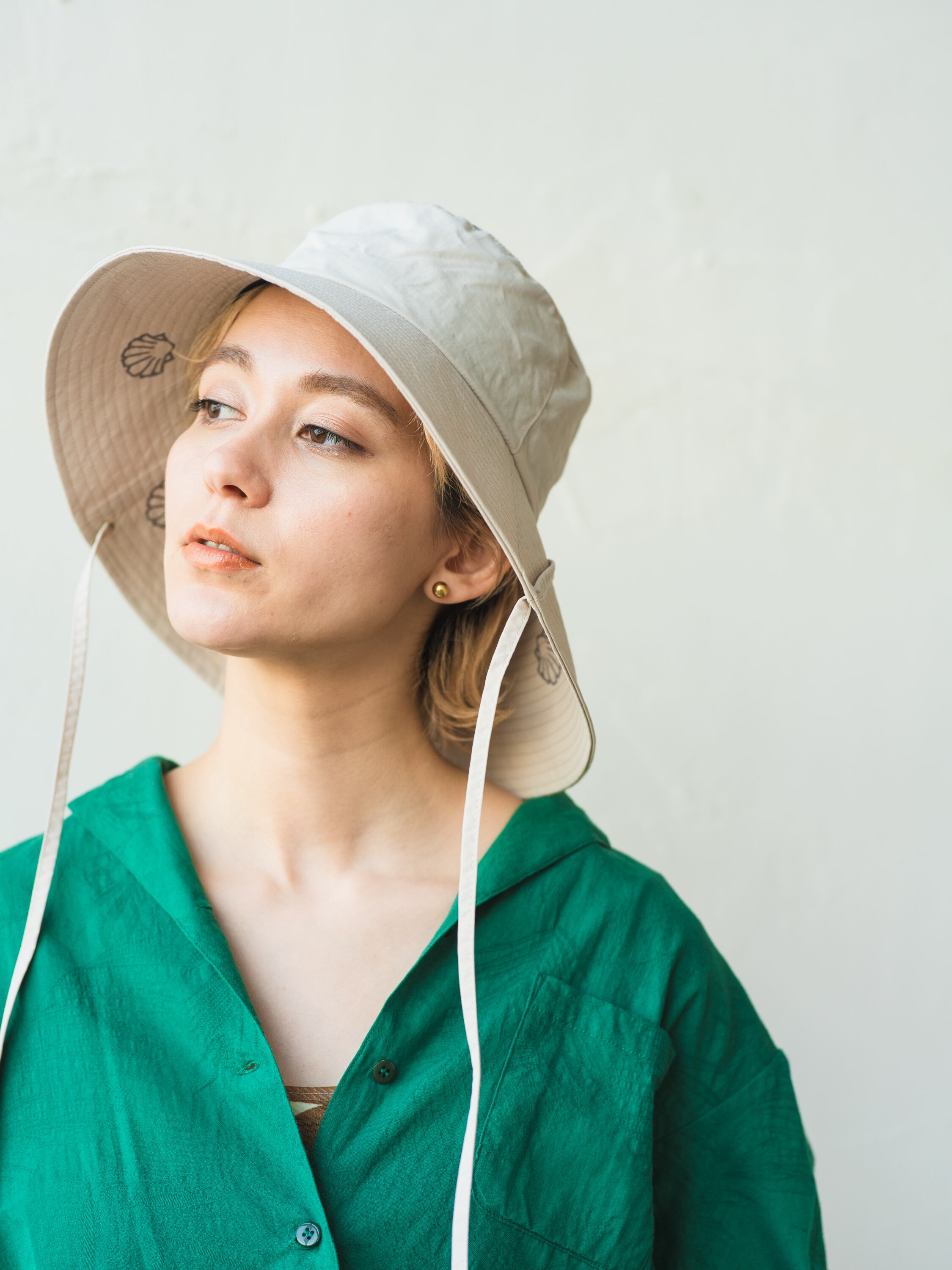 つば裏には貝殻が散りばめられ、わくわくするデザインが詰まっています。