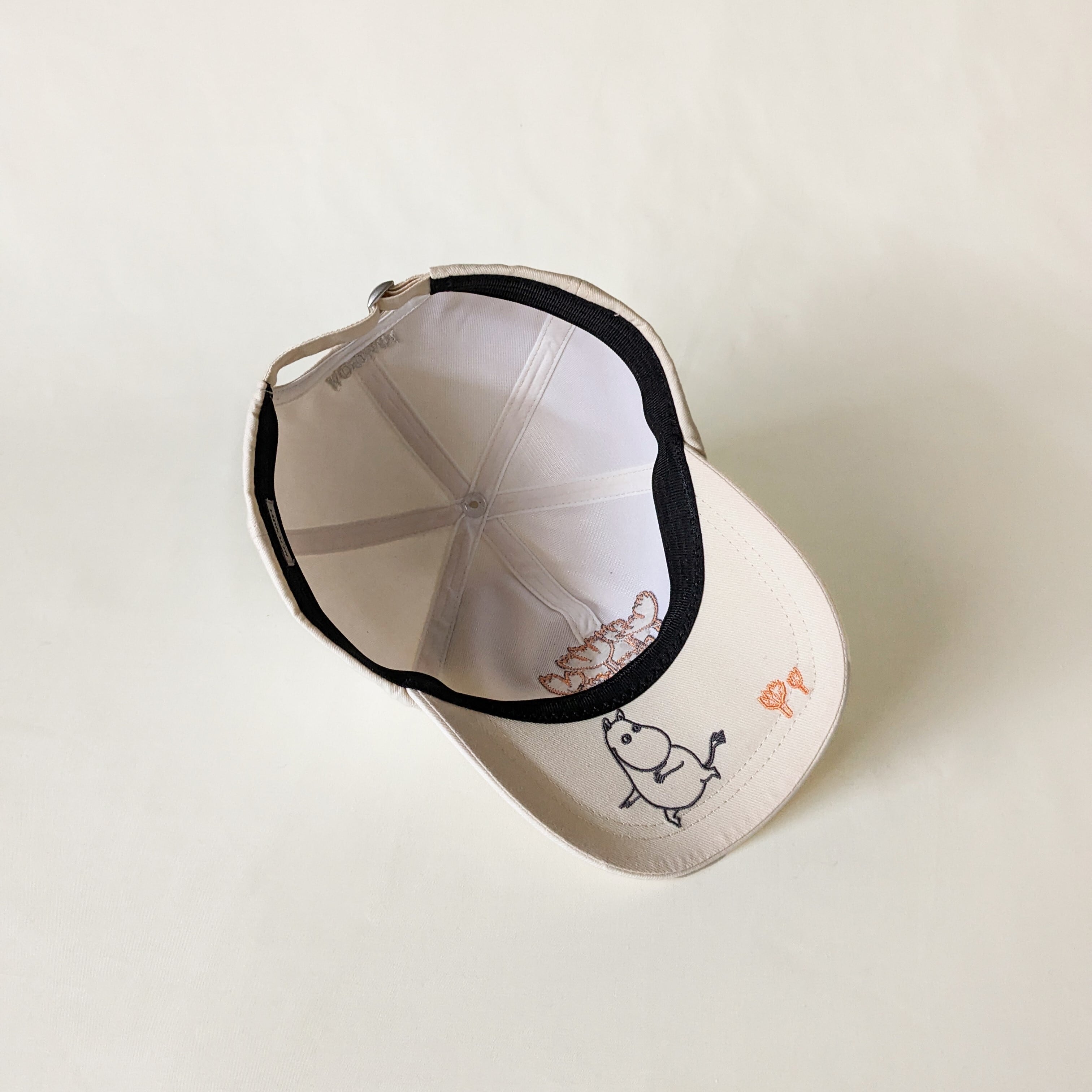 つば裏側にはムーミンが散歩しています。