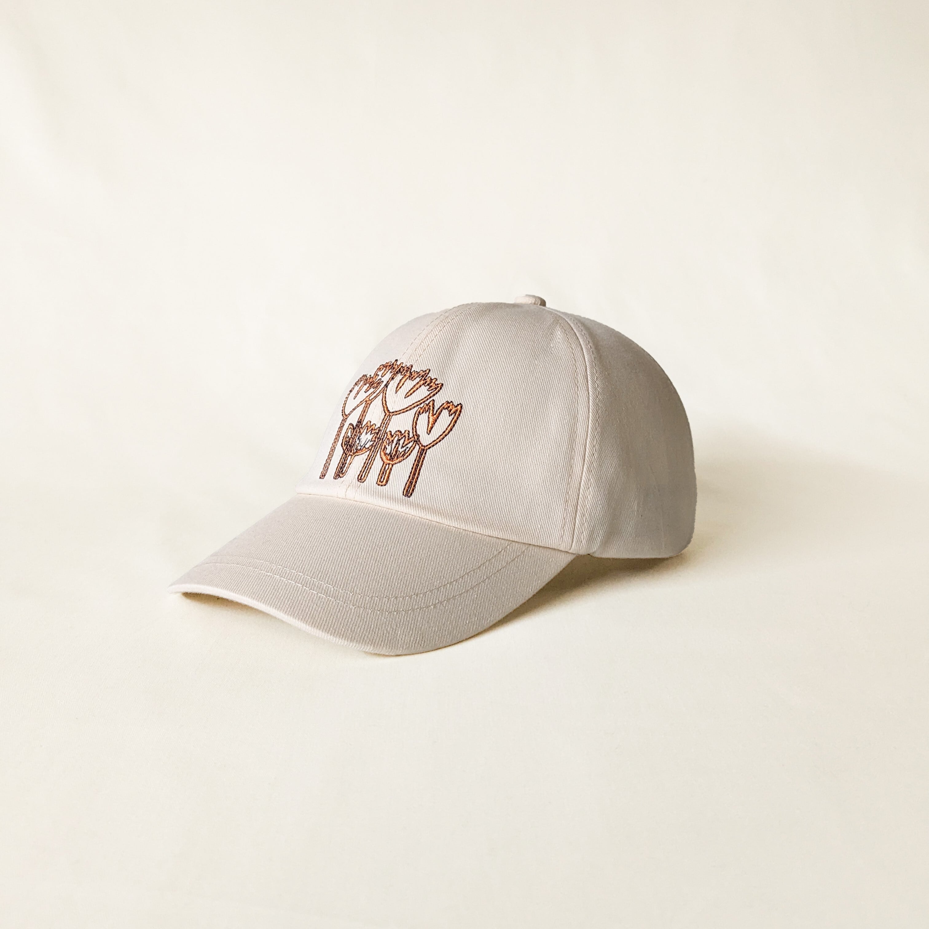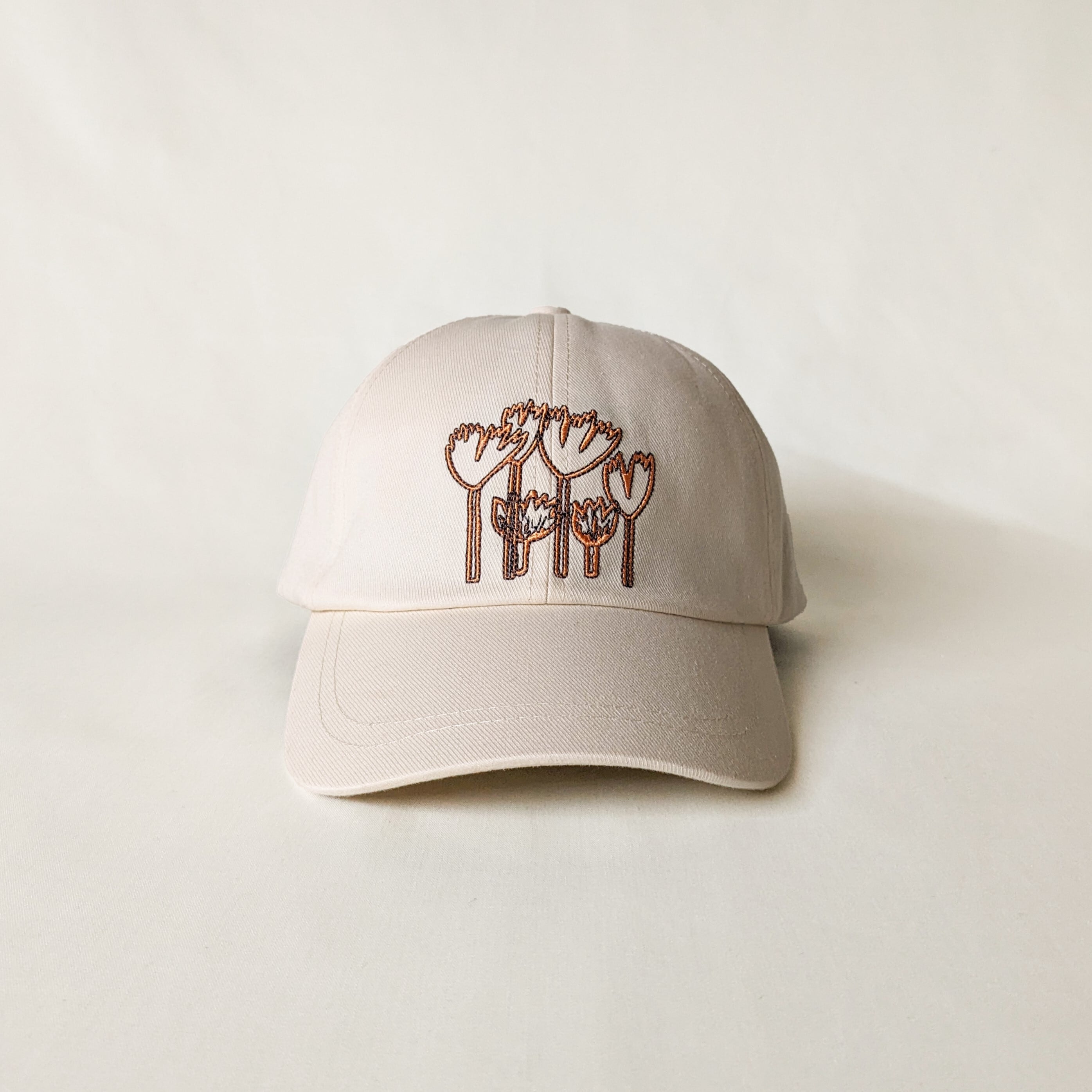 フロントにムーミン谷の植物が刺繍された愛らしさたっぷりなキャップ。