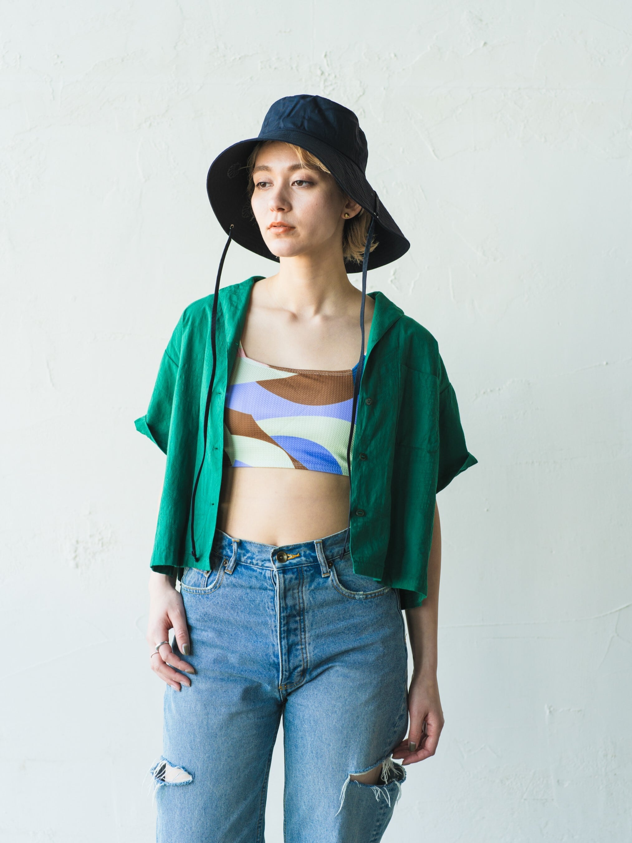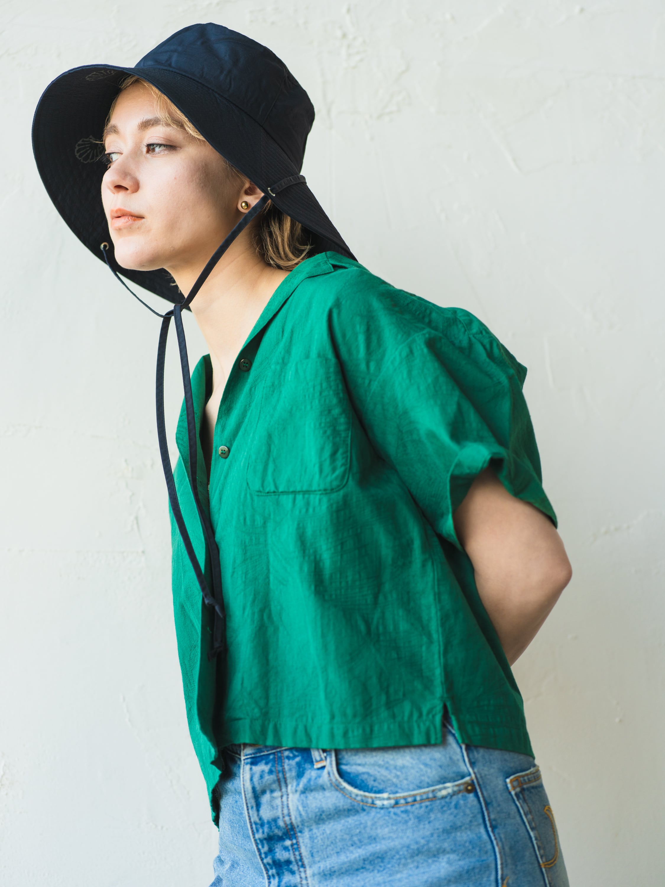 ブリムは前がミドル、後ろが長めに設計しているので、視界を広く保ちつつサイドから首後ろの日除け対策がしっかりできます。
